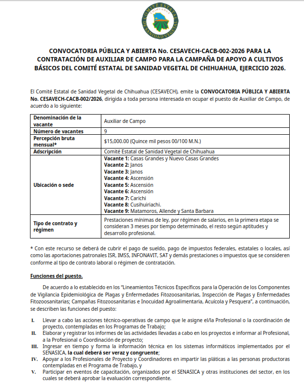 Auxiliar de campo para la campaña de apoyo Cultivos Básicos Maíz y Frijol